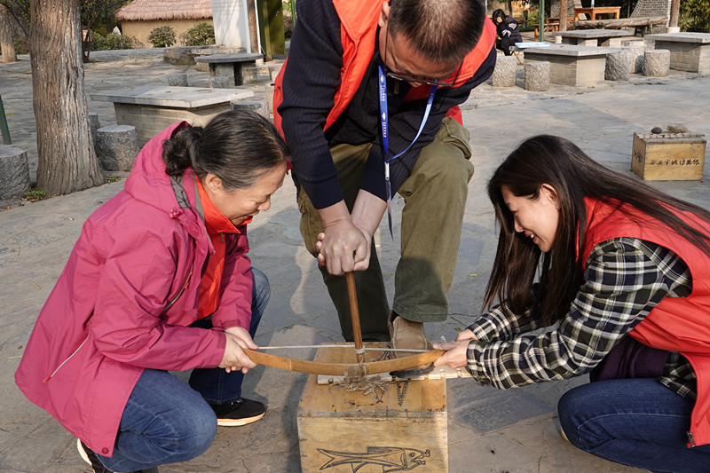 青博志愿者团队一行参观了拥有唐美人儿网红藏品的西安博物院,在漫步园林与欣赏精美藏品间,回味大且美的唐长安城。史前遗址博物馆——西安半坡博物馆内,钻木取火的“史前工场”体验,让志愿者们欣喜于古人的生存智慧。丝路起点的大唐西市,也以遗址再现的独特方式,给来自黄海之滨的游人留下了重温盛唐气象的无限遐思。在碑林博物馆一级讲解员的解说下,一块块矗立的石碑倾诉着各自的传世故事,志愿者们也沉醉这一展示古人精神世界的长轴画卷之中。